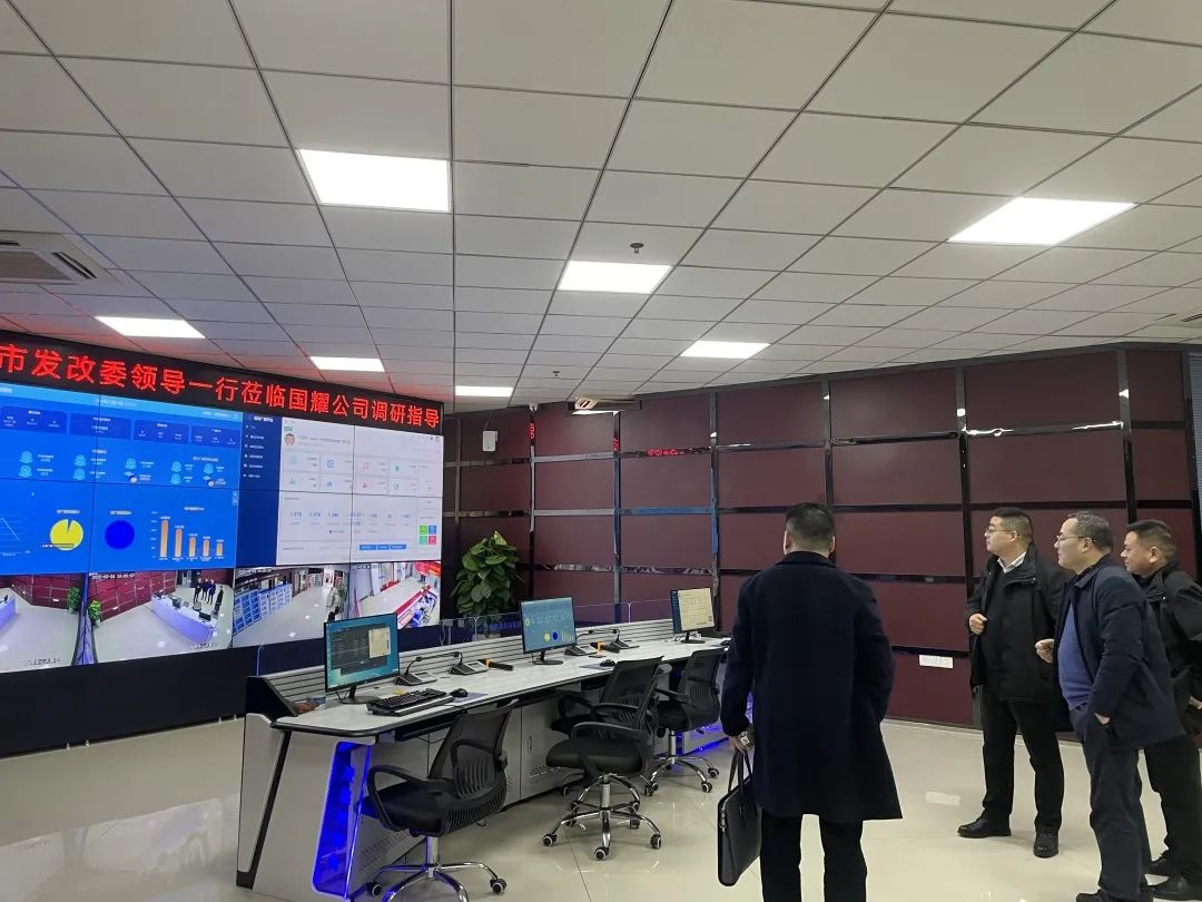 2022年02月24日下午,六安市發(fā)改委副主任談業(yè)文、總經(jīng)濟師吳景春,來我司調(diào)研企業(yè)工作,領(lǐng)導一行參觀了國耀公司自主設(shè)計的多功能調(diào)度指揮大廳。