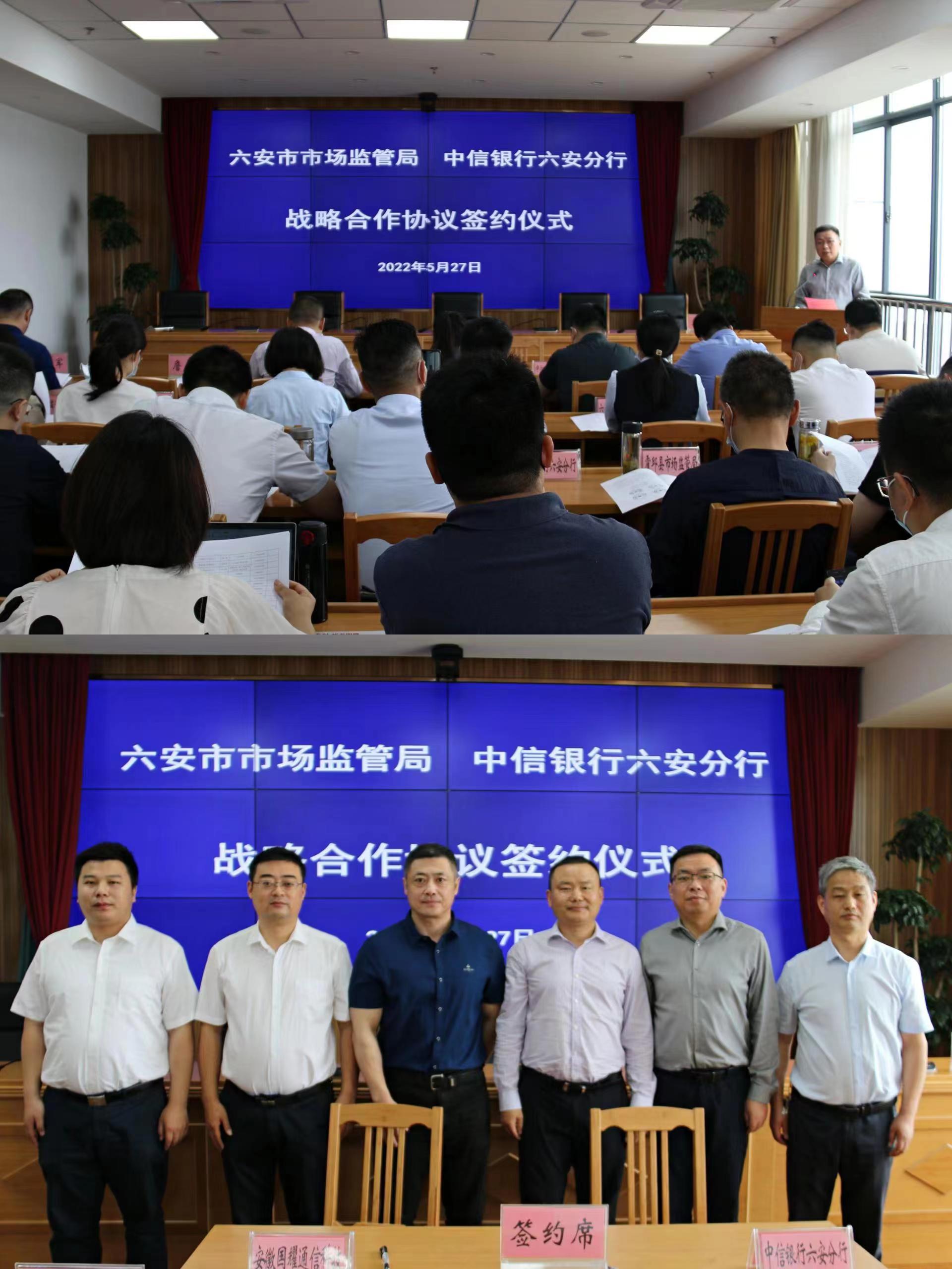 為全面促進(jìn)知識(shí)產(chǎn)權(quán)與金融深度合作,深入推動(dòng)知識(shí)產(chǎn)權(quán)強(qiáng)市建設(shè),六安市市場(chǎng)監(jiān)督管理局與中信銀行股份有限公司六安分行戰(zhàn)略合作協(xié)議簽約儀式暨知識(shí)產(chǎn)權(quán)質(zhì)押融資供需對(duì)接會(huì)于2022年5月27日上午如期舉行。市發(fā)改委、市財(cái)政局、市文旅局、各銀行機(jī)構(gòu)、市融資擔(dān)保有限公司及市直相關(guān)企業(yè)等領(lǐng)導(dǎo)出席簽約儀式。