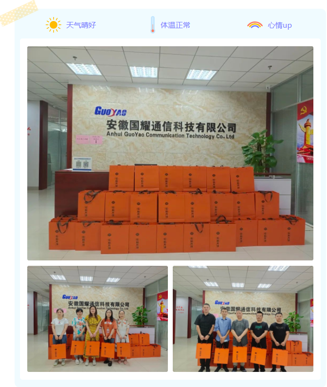 安徽國耀通信科技有限公司一直重視對員工的節(jié)日關懷,每逢佳節(jié)總少不了溫暖的祝福和體貼的福利,讓每一位員工感受到家一般的溫暖。