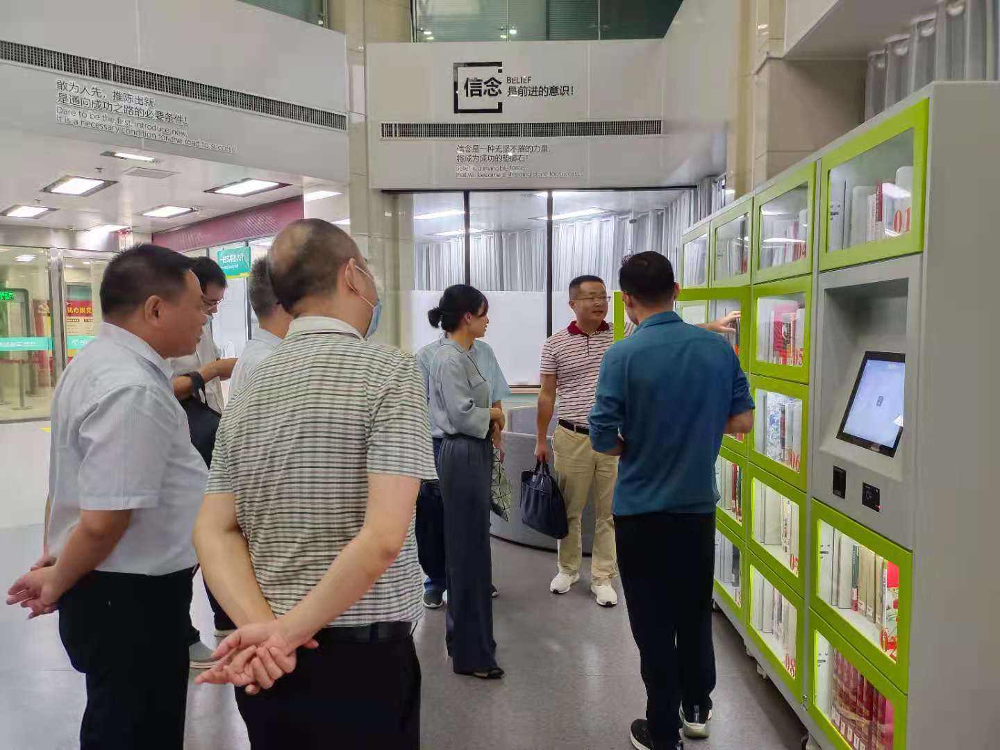 會(huì)后,安珺一行來(lái)到公司自主研發(fā)的智能書柜前,實(shí)地察看智能書柜的預(yù)借、借閱、歸還、查詢、資源共享、數(shù)據(jù)統(tǒng)計(jì)等功能,大家一致認(rèn)為該書柜具有提供圖書多點(diǎn)布置、讀者自助操作簡(jiǎn)單方便的特點(diǎn),可以提供人性化的功能需求,讓文化的傳播和科技相結(jié)合,真正開創(chuàng)了一個(gè)好讀書、勤讀書、讀好書、善讀書的圖書服務(wù)平臺(tái),將成為社會(huì)一道亮麗的文化科技風(fēng)景線。