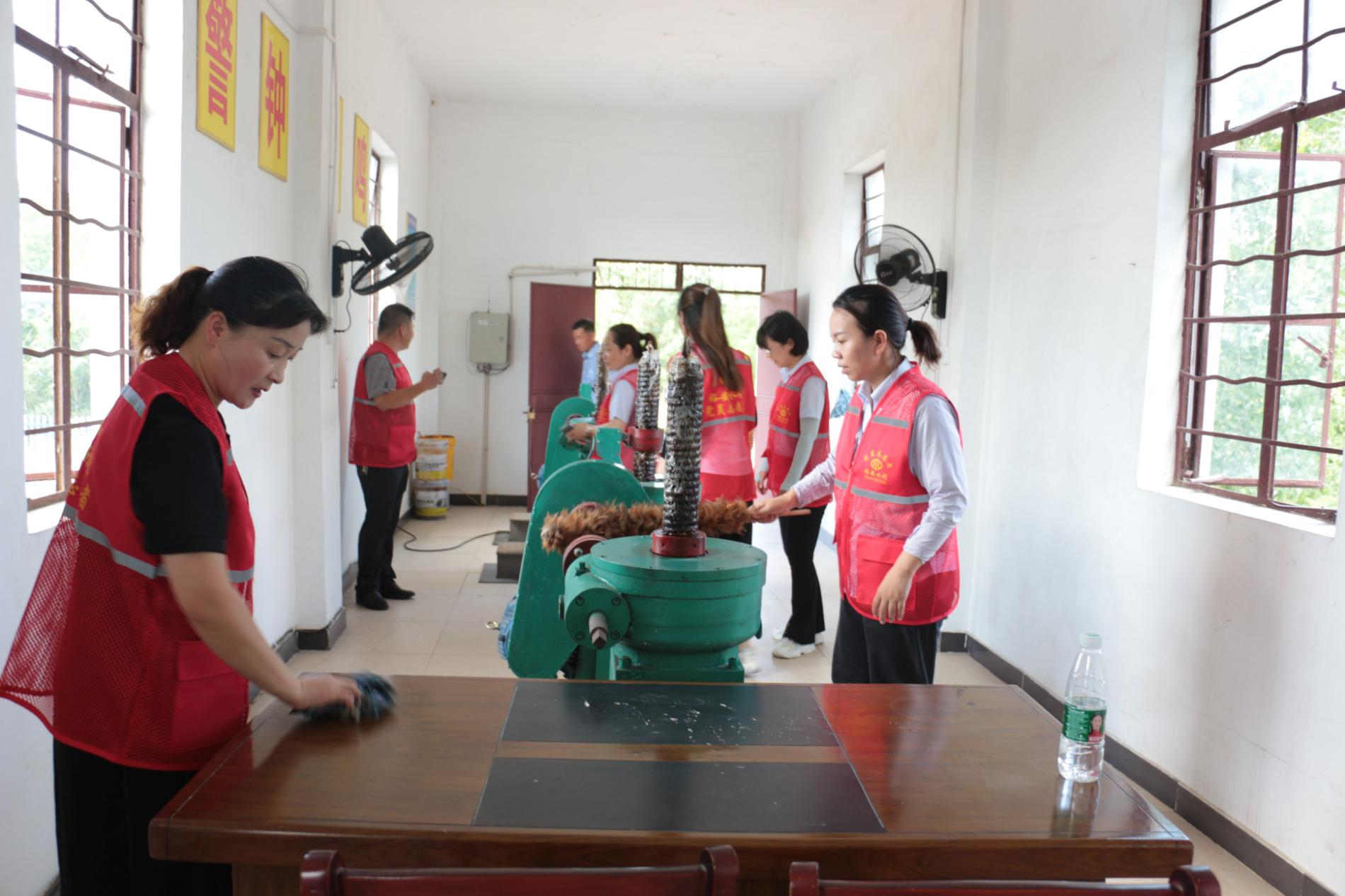 “黨旗高高飄揚,我為群眾辦實事”。兩支部黨員同志協(xié)力打掃泄洪閘機(jī)房衛(wèi)生、啟閉機(jī)養(yǎng)護(hù)、清理沿渠垃圾雜草,用實際行動保護(hù)水利設(shè)施、珍愛水利工程。